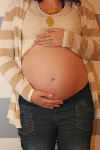 Cutest belly!! I love the white/cream shirt and the striped cardigan!